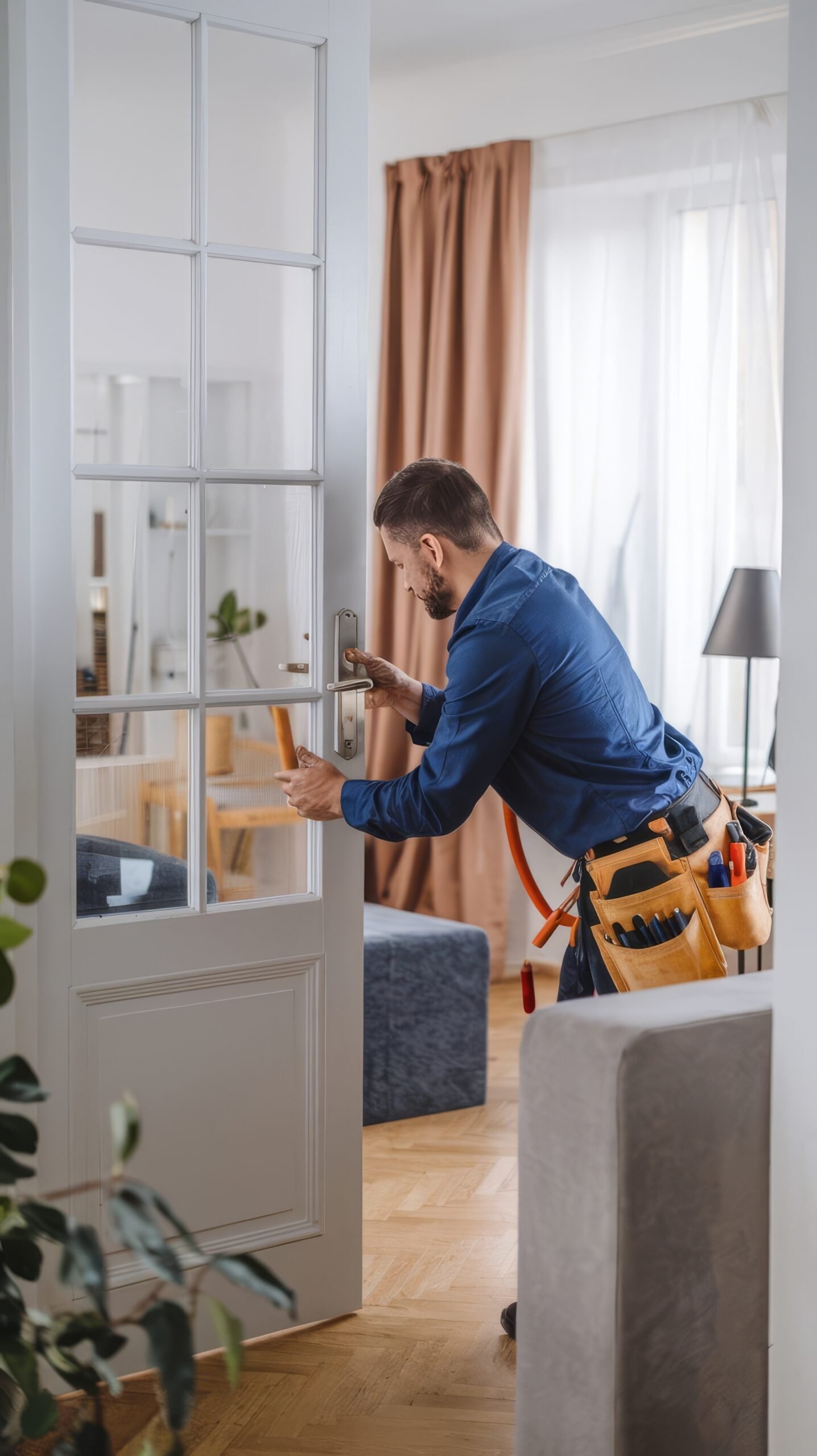 • Входни врати и сигурност: Регулиране на автомати за затваряне, смазване и ремонт на брави, панти и системи за контрол на достъпа.