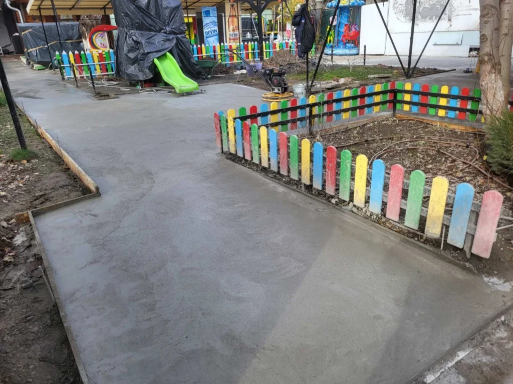 Изкопни и насипни работи, изпълнение на подложка от инертни материали и задаване на наклони към отводнителните съоръжения. Правилното уплътняване (трамбоване) е ключът към дълготрайността.